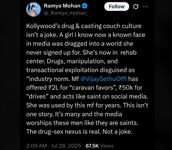 Actor Vijay Sethupathi has issued an official response following a serious harassment allegation made against him on social media earlier this week. A woman took to X (formerly Twitter), accusing the actor of misconduct. The post quickly gained attention online. In a statement to Deccan Chronicle, Sethupathi firmly denied the accusations, calling them false and filthy. The actor maintained that the allegations were an attempt to gain attention and that they hold no weight.